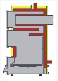 Сжигание продуктов сгорания наступает в топочной, затем пепел попадает в нижнею часть котла.