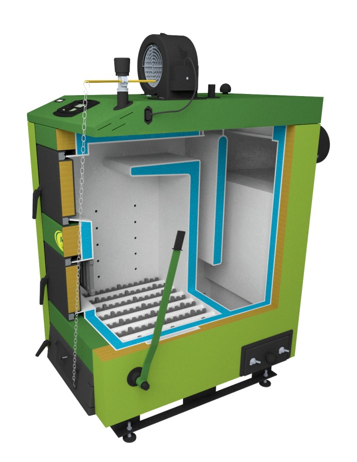 Котел SAS MI это устройство адаптированное для работы с верхним и нижним сжиганием твердого топлива.