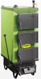 Котлы SAS UWG работают с использованием естественной тяги, поэтому его эксплуатация не требует использования электроэнергии. Процесс сжигания контролируется механическим регулятором тяги, который поставляется с котлом. Корпус котла изготовлен из котловой стали толщиной 6 мм (марка P265GH). Весь теплообменник изолирован минеральным утеплителем.